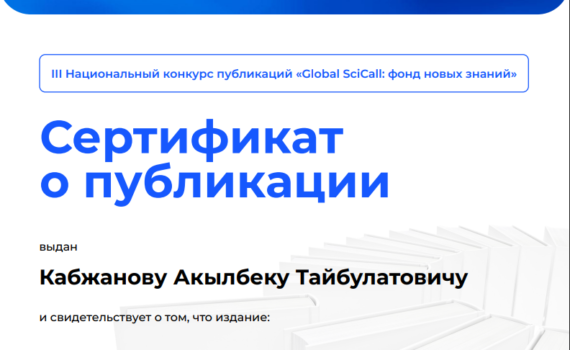 В марте 2026 года было опубликовано учебно-методическое пособие Кабжанова А. Т. «Виктимология» (Алматы, Москва: EDP Hub (Идипи Хаб), Ай Пи Ар Медиа, 2026. — 112 с. — ISBN 978-5-4497-5071-6). Работа представлена в рамках III Национального конкурса публикаций «GLOBAL SCICALL: Фонд новых знаний» и по итогам конкурса издана как самостоятельное научно-методическое […]