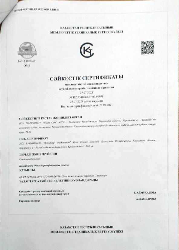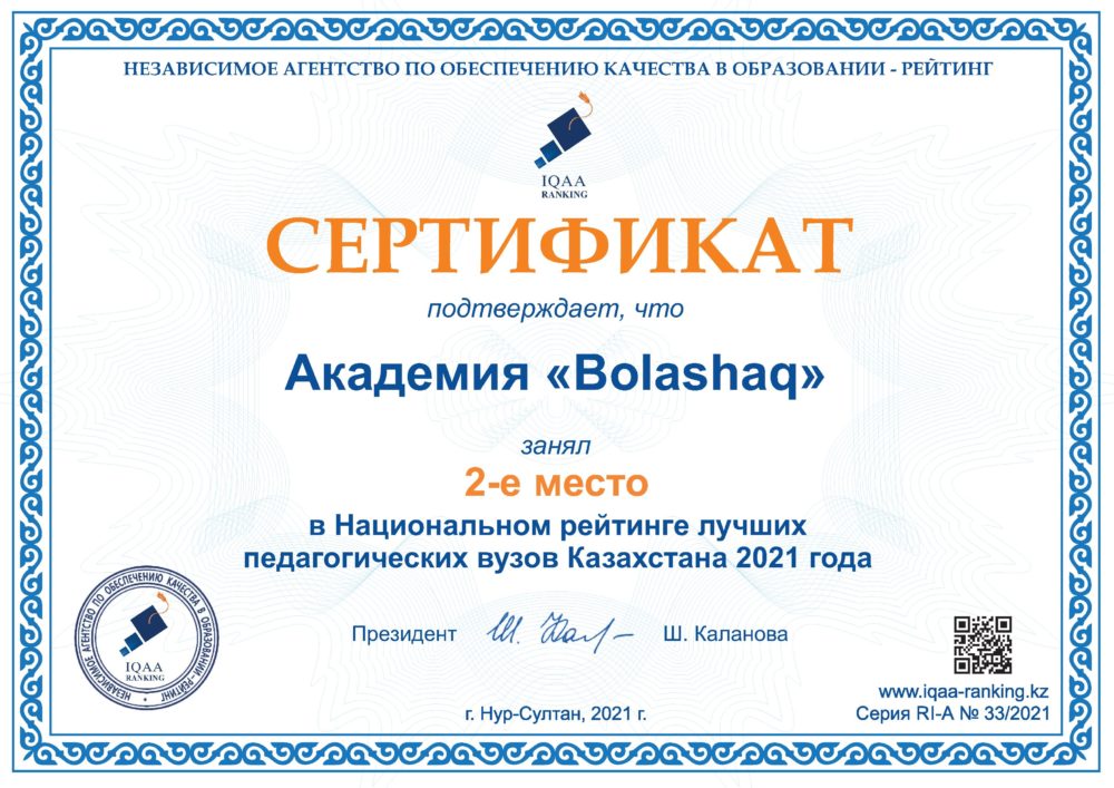 «Bolashaq» академиясы» ЖМ-нің пайымдалуы – жоғары білімді, бәсекеге қабілетті, әлеуметтік бағдарланған мамандарды даярлауды жүзеге асыратын, инфрақұрылымы дамыған өңірлік жоғары оқу орны.
