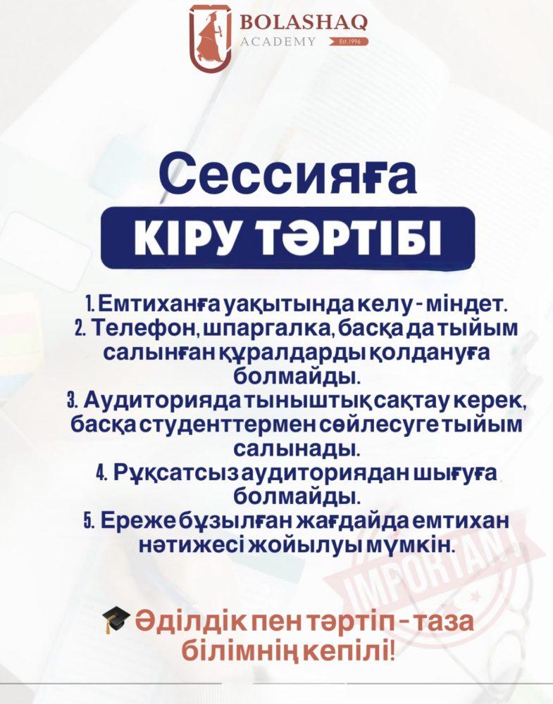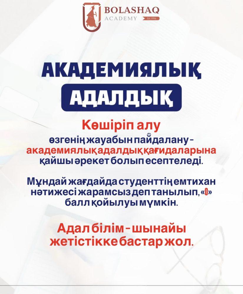 «Bolashaq» академиясында емтихан апталығы басталды. Бұл — тек білімді сынайтын кезең ғана емес, сонымен қатар әр студенттің академиялық адалдығы мен жеке жауапкершілігін көрсететін маңызды уақыт.