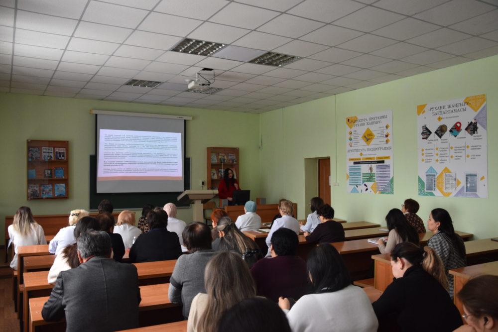 П.ғ.м., Шет тілі кафедрасының аға оқытушысы М.М.Момбекованың «Білім беру процесінде зерттеу құзыреттілігін қалыптастыру тәсілдері» тақырыбындағы баяндамасы студенттер мен оқытушылардың зерттеу дағдыларын дамытудың заманауи тәсілдерін көрсетті. Оқытудың теориялық негіздеріне, инновациялық әдістеріне және педагогтар үшін ғылыми-зерттеу қызметінің маңыздылығына, сондай-ақ скорейтингтік журналдарда жариялаудың маңыздылығына ерекше назар аударылды.