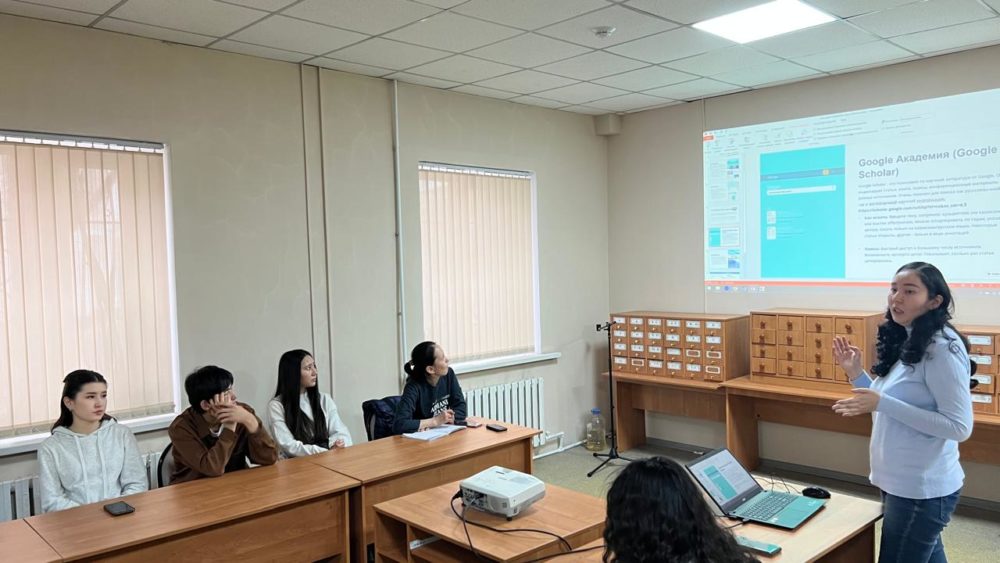 - Google Scholar – академиялық әдебиеттерге арналған әмбебап іздеу жүйесі. Қатысушыларға кілт сөздер, авторлар, тақырыптар және жарияланған жылы бойынша іздеу мүмкіндігі көрсетілді. Деректерді сүзу, дәйексөз бойынша сұрыптау және авторлық профильдерді құру және басқару әдістері түсіндірілді.