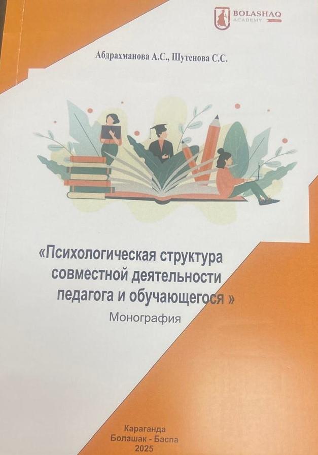 Монография. «Педагог пен оқытушының бірлескен қызметінің психологиялық құрылымы». Авторлары: Абдрахманова А.С., Шутенова С.С.