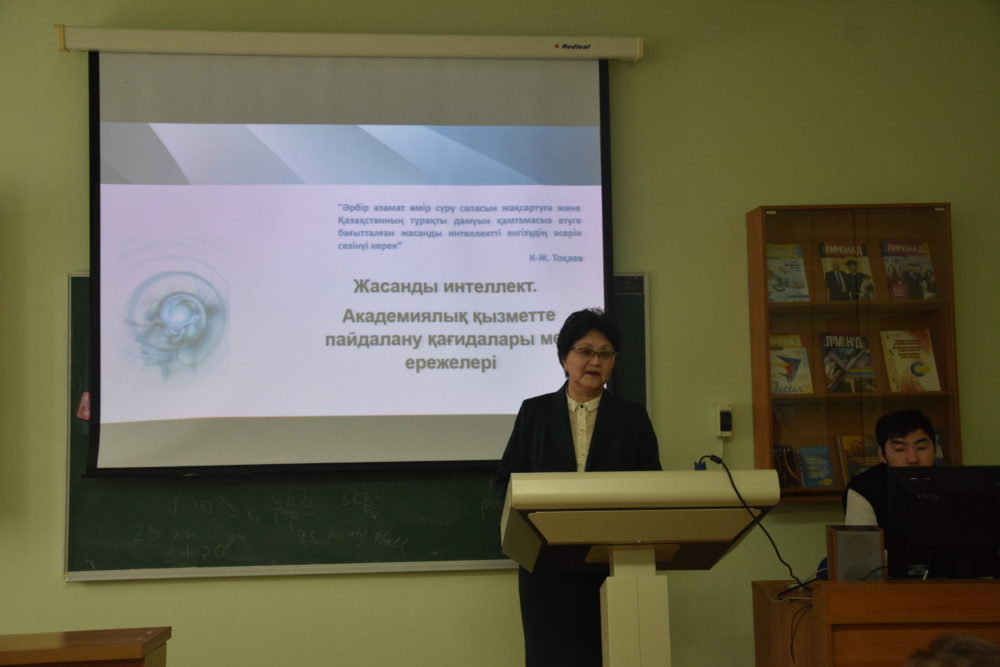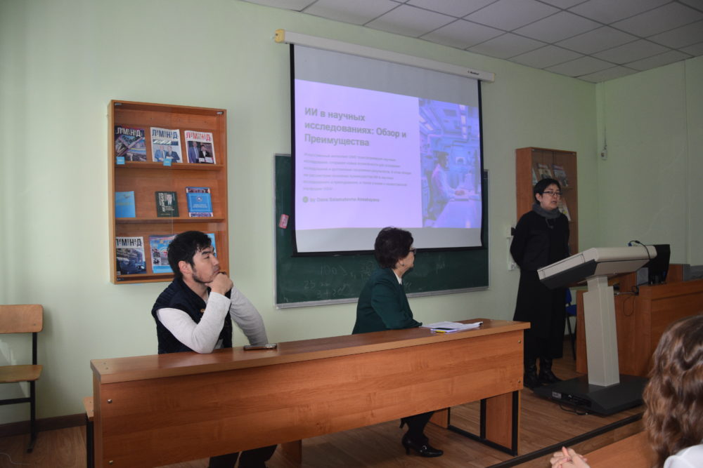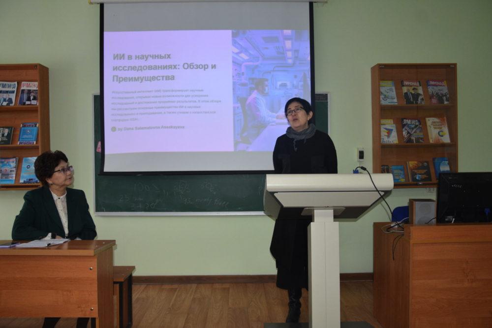 Педагогика ғылымдарының кандидаты, ғылыми жұмыс және халықаралық ынтымақтастық жөніндегі проректор Дана Саламатқызы Асакаева білім беру ортасындағы мүмкіндіктер туралы айтып, ISSAI қазақстандық платформасымен таныстырды. Сонымен қатар, ол ғылыми зерттеулердің тиімділігін арттыруға, оқу материалдарын дайындауға және бірқатар академиялық тапсырмаларды автоматтандыруға қабілетті ChatGPT және Gamma заманауи құралдарының практикалық қолданылуын көрсетті.