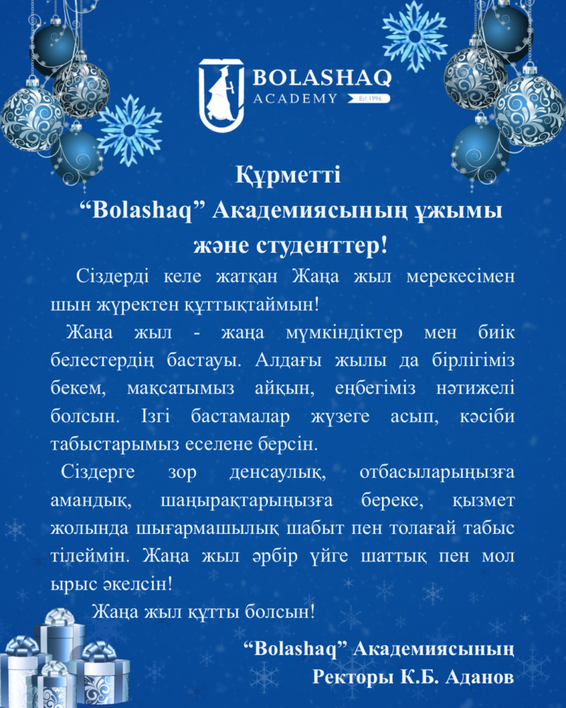 Бұл жыл әрқайсыңызға жаңа мүмкіндіктер, толағай табыс пен қуанышты сәттер сыйласын.