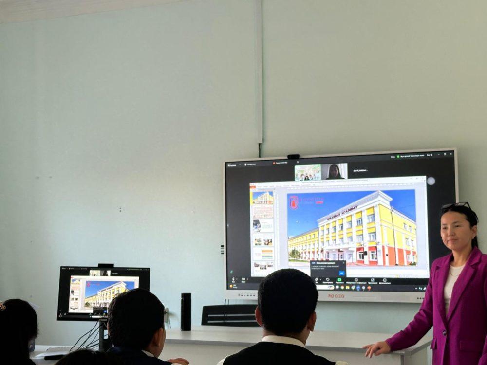 Педагогика кафедрасының аға оқытушысы Мекадилова С.К. кәсіби бағдар беру барысында Ұлытау ауданы білім бөлімінің “Жамбыл Жабаев атындағы №15 тірек мектебі (ресурс орталығы)” коммуналдық мемлекеттік мекемесінде 9-10-11 сынып оқушылары арасында онлайн кездесу өткізді.