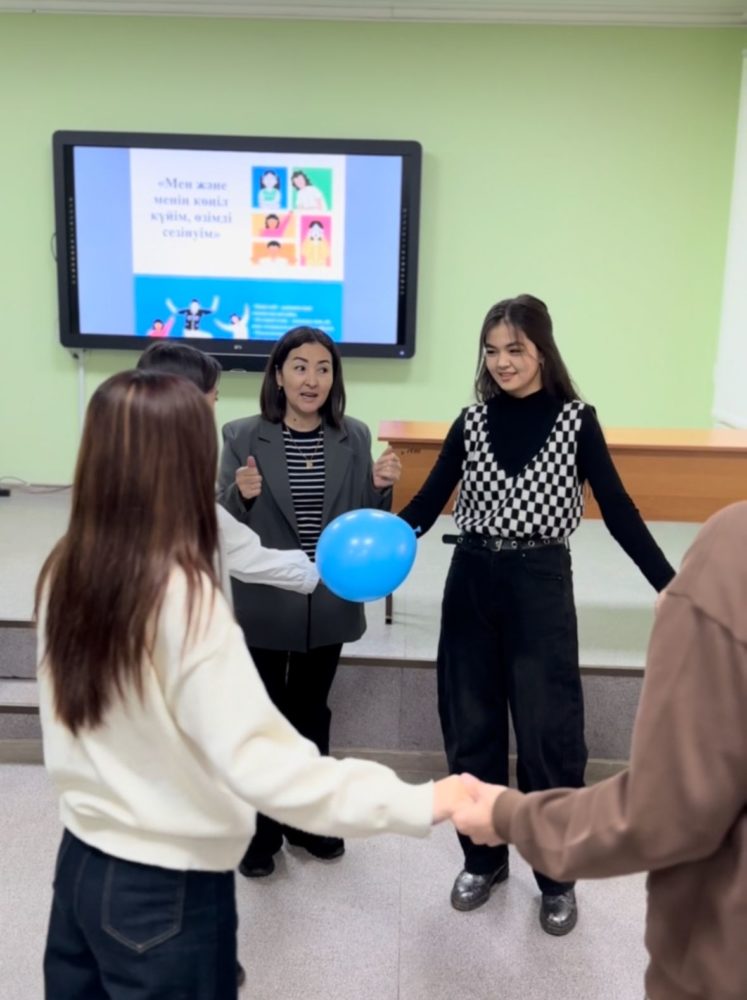 “Өзіңді таны” психологиялық клубының жетекшілері М.Б.Коржумбаева, С.К.Мекадилова “Мен және менің көңіл-күйім мен өзімді сезінуім” тақырыбында студенттер арасында тренинг өткізді.