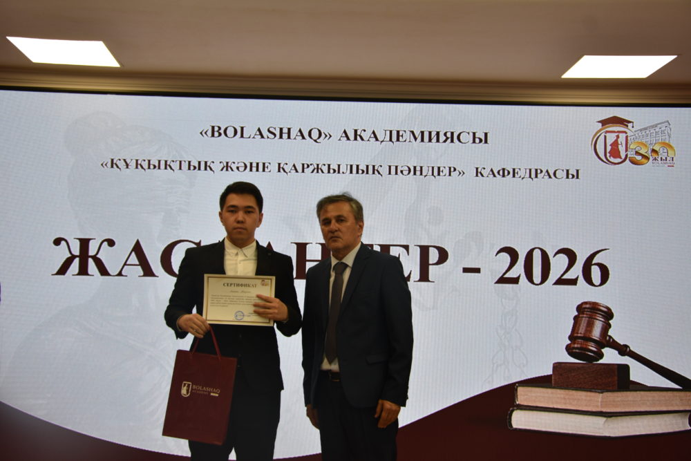 10 сәуір «Bolashaq» Академиясы «құқықтық және қаржылық пәндер кафедрасының» ұйымдастыруымен Қазақстан Республикасы Тәуелсіздігінің 35 жылдығы мен Академияның 30 жылдығына орай өткен «Жас Заңгер – 2026» байқауы өз мәресіне жетті. Бұл білім сайысы жас талапкерлердің құқық саласына деген қызығушылығын арттырып, олардың кәсіби бағдарын айқындауға бағытталды.