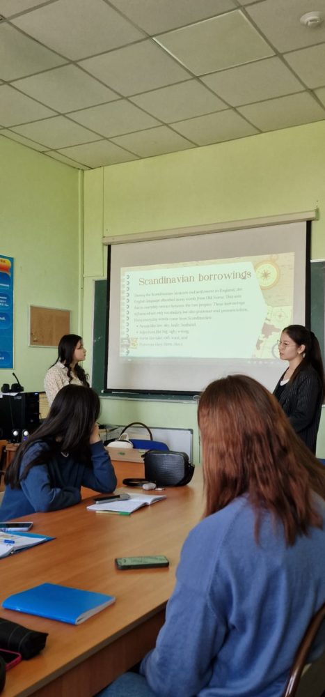 23 апреля 2025 года в 08:30 в аудитории 318 состоялся открытый семинар по дисциплине History of the English Language на тему English Vocabulary. Семинар был проведён старшим преподавателем кафедры иностранных языков и межкультурной коммуникации Альжановой А.Ы. для студентов группы Ин-23-1,2.