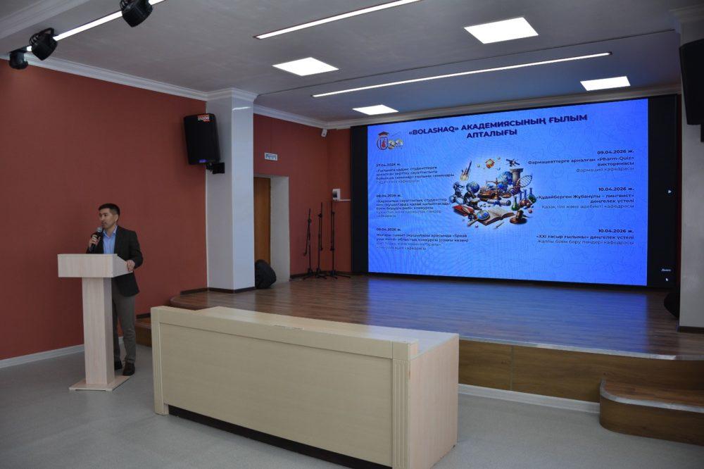 На церемонии открытия «Недели науки» с приветственным словом выступил: руководитель Управления науки и международного сотрудничества PhD Хасенов Б.Р.