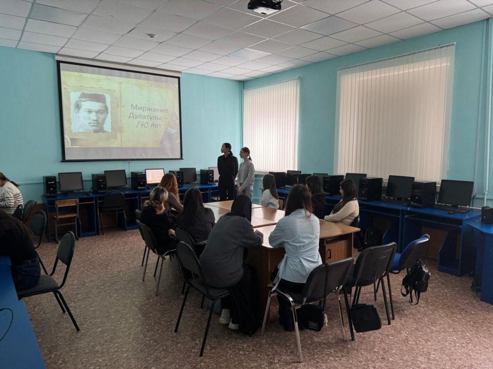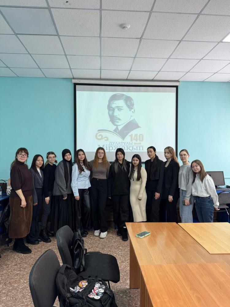 В ходе мероприятия студенты познакомились с основными этапами жизни и творчества Миржакипа Дулатулы, его вкладом в развитие национальной культуры, образования и общественной мысли. Особое внимание было уделено литературным произведениям, патриотическим идеям и значению его наследия для современного поколения.