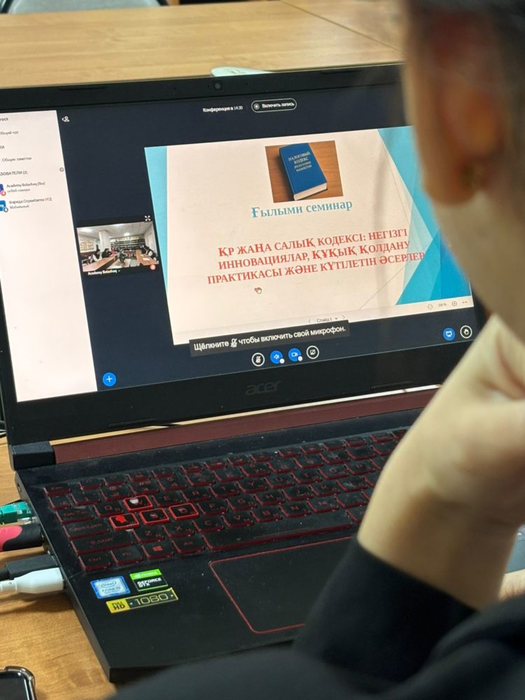 28 ноября кафедрой правовых и финансовых дисциплинх Академии был организован научный семинар «Новый Налоговый кодекс РК: ключевые нововведения, правоприменительная практика и ожидаемые эффекты». Модератор семинара — к. ю.н., профессор Кабжанов А. Т. В мероприятии, наряду с преподавателями кафедры, студентами образовательной программы «Правоведение», приняла участие проректор по научной работе и международному сотрудничеству Асакаева Дана Саламатовна, которая вносит особый вклад в развитие научного потенциала университета.