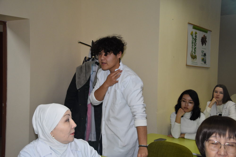 Студенты приняли активное участие в обсуждении и поделились своими размышлениями. Студенты группы Фм-24-2 — Ермаханов Ернұрым, Абдрахманов Медеу и Сахиева Айдана -отметили основные различия между общей этикой и фармацевтической этикой, подчеркнув их значимость.
