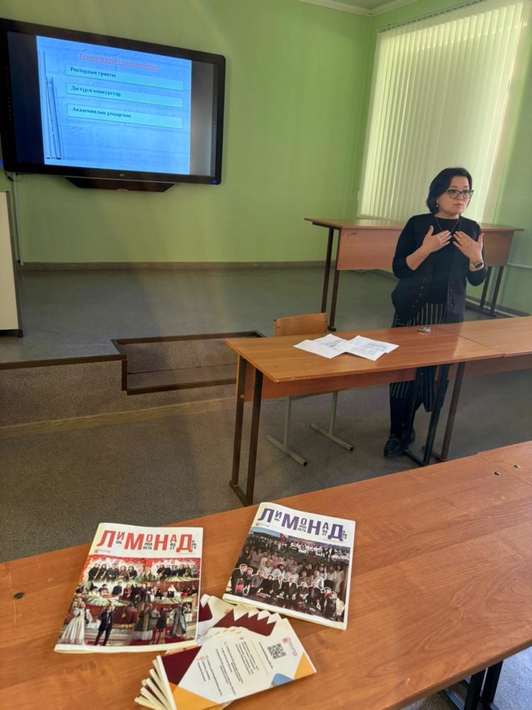 На встрече приняла участие секретарь приемной комиссии Косманова А.Б.. Она подробно рассказала студентам о текущем уровне спроса на педагогические специальности в стране, о том, как это учитывается в миссии Академии, а также о возможностях и перспективах наших выпускников. Студенты активно задавали вопросы и получили исчерпывающую информацию.