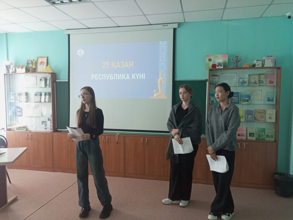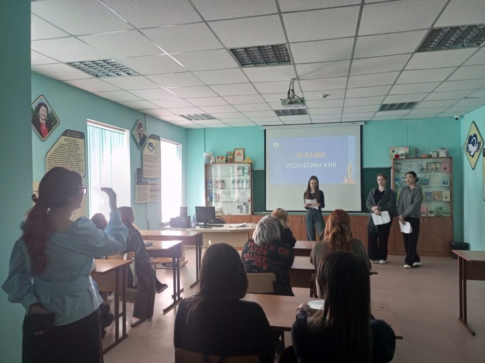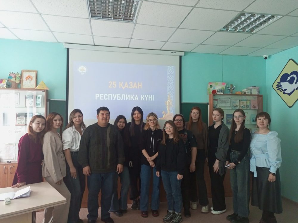 В ходе кураторского часа была проведена беседа со студентами о значимости 25 октября — дня Республики, о становлении и развитии Казахстана как суверенного Государства, о важности сохранения единства народа Казахстана для общего блага и счастливого будущего.