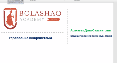 02 октября 2025 года проректор по научной работе и международному сотрудничеству Академии «Bolashaq» Асакаева Д.С. провела онлайн-семинар на тему «Управление конфликтами в профессиональной деятельности» в рамках программы обучения наставников, организованной Палатой предпринимателей «Атамекен».