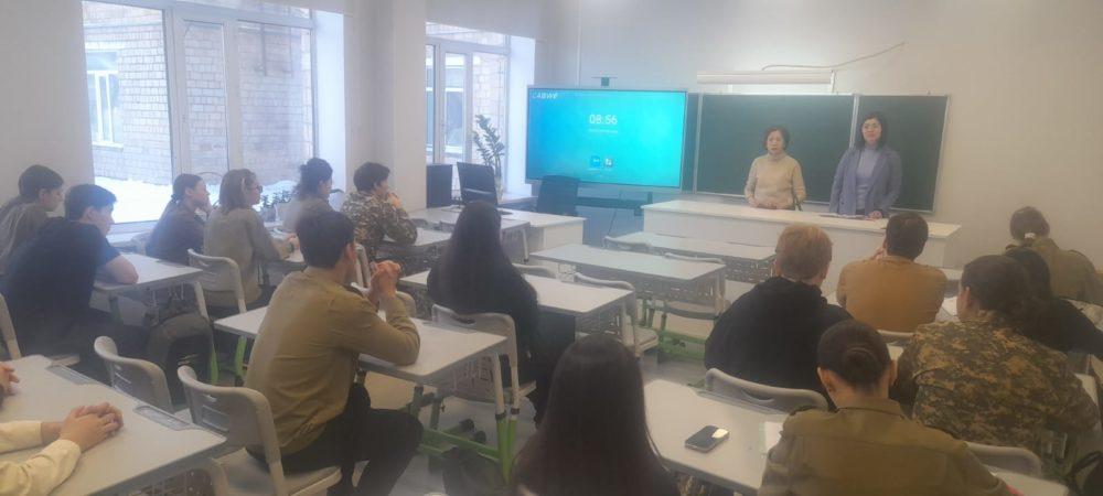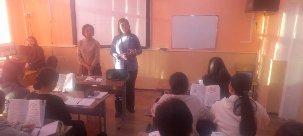 В рамках реализации плана профориентационной работы и в целях информирования учащихся общеобразовательных учреждений о возможностях получения высшего образования в «Академии «Bolashaq» 30 января 2026 года старший преподаватель Абдрешева М.К. и доцент кафедры «Иностранных языков и межкультурной коммуникации» Бегахметова Б.К. провели профориентационную встречу с учащимися 11 классов. Их познакомили с историей, образовательными программами, учебной, научной и воспитательной деятельностью Академии как современном высшем учебном заведении, реализующем образовательные программы, ориентированных на требования современного рынка труда и международные стандарты образования.