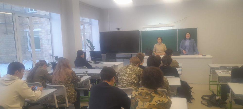 В рамках реализации плана профориентационной работы и в целях информирования учащихся общеобразовательных учреждений о возможностях получения высшего образования в «Академии «Bolashaq» 30 января 2026 года старший преподаватель Абдрешева М.К. и доцент кафедры «Иностранных языков и межкультурной коммуникации» Бегахметова Б.К. провели профориентационную встречу с учащимися 11 классов. Их познакомили с историей, образовательными программами, учебной, научной и воспитательной деятельностью Академии как современном высшем учебном заведении, реализующем образовательные программы, ориентированных на требования современного рынка труда и международные стандарты образования.