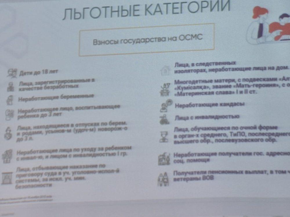 Она рассказала, что в Казахстане С 01.01.2020 года действует система обязательного медицинского страхования ( ОСМС). С этого времени казахстанцы начали отчислять деньги на медстрахование и пользоваться необходимым спектром медицинских услуг.