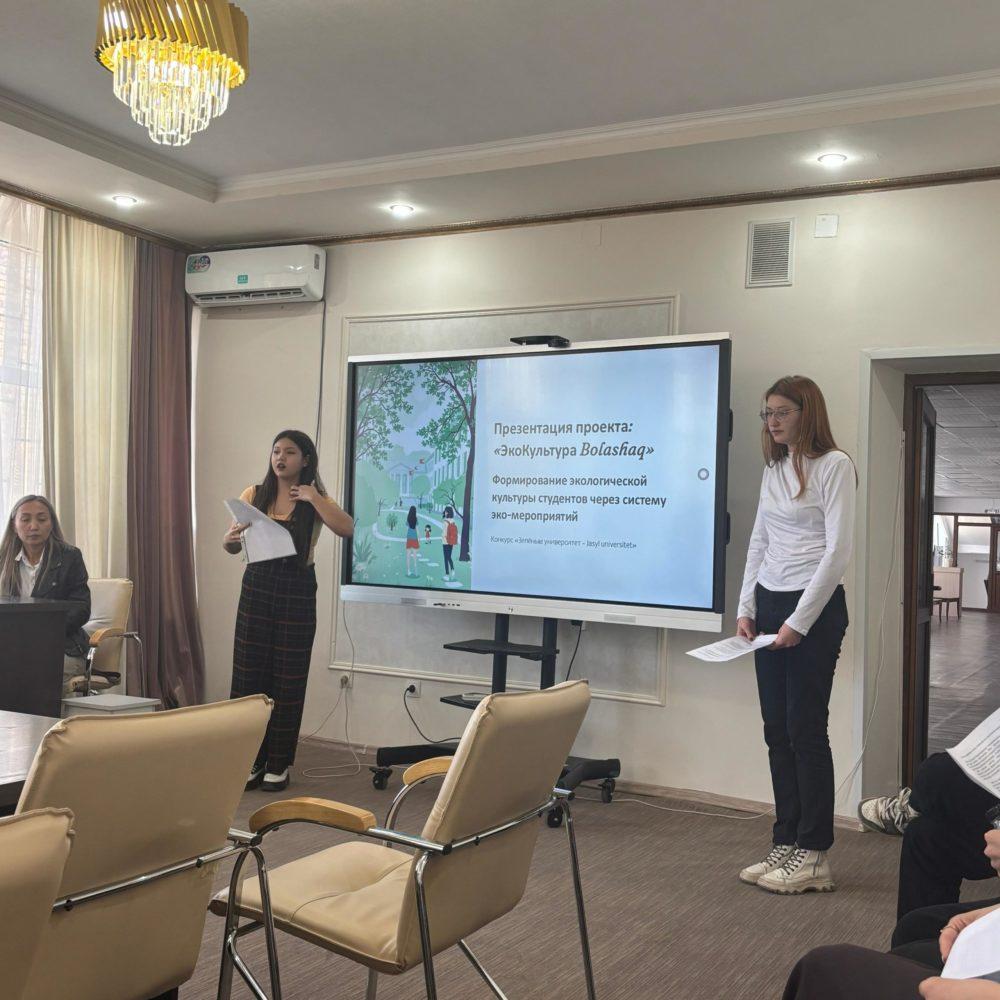 Студенты представили свой проект на тему: «Формирование экологической культуры студентов Академии «Bolashaq» через эко-мероприятия».