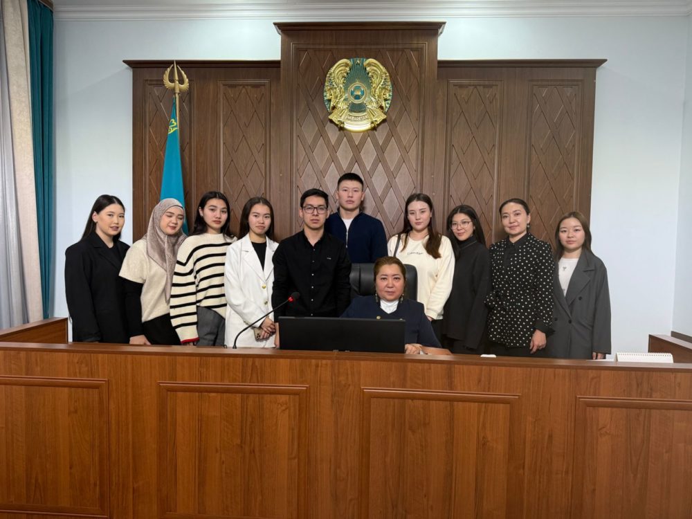 1 декабря 2025 года студенты группы Ю-23-2 Программы юридического образования Академии «Bolashaq» под руководством старшего преподавателя Копжасаровой С.И. приняли участие в открытом судебном заседании по гражданскому делу в районном суде № 2 района Казыбек би города Караганды в рамках предмета «Гражданское процессуальное право Республики Казахстан».