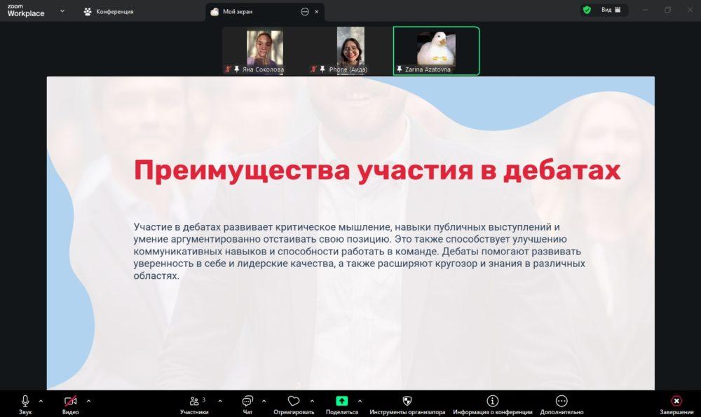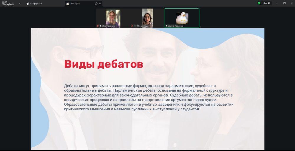 Погружение в дебаты: анализ типичных ошибок, допускаемых при участии в дебатах, а также разбор основных правил и принципов их проведения. Особое внимание было уделено структуре аргументации, логике высказываний, корректности речевого поведения и соблюдению регламента.
