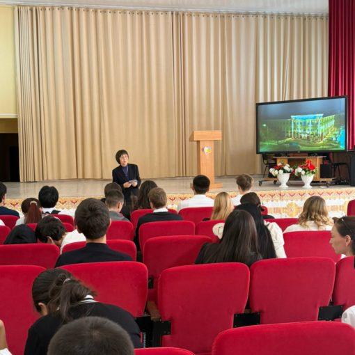 Темиреева К.С. проинформировала участников о предстоящей областной олимпиаде по направлению «Химия–биология», отметив, что её призёрам будут предоставлены скидки на обучение в размере 100%, 50% и 25%. Также было подчеркнуто, что по решению ректора предусмотрены льготы для студентов из многодетных семей и назначается ректорская стипендия обучающимся с высокой академической успеваемостью и активной научно-общественной деятельностью. В завершение встречи учащимся был продемонстрирован видеоролик об Академии «Bolashaq» и розданы информационные материалы. Проведённое мероприятие способствовало формированию у выпускников осознанного подхода к выбору будущей профессии и образовательной траектории.